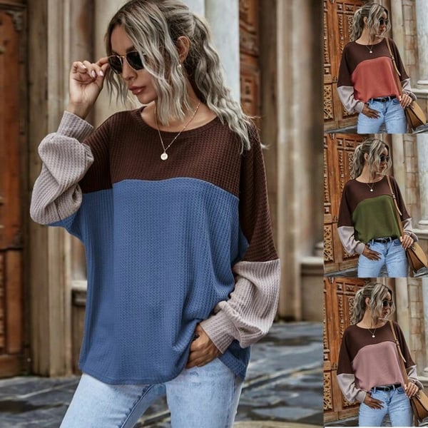Waffle Long Sleeve Casual Pullover Jumper Sweater